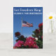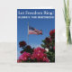 Photo of an American Flag with blue sky and red bougainvillea flowers. Text on the front of the card reads "Let Freedom Ring! Celebrate Your Independence!" Inside text reads "Happy 4th of July!" This image can be transferred to other products. You may customise the text using Zazzle's many different font styles and colours or remove the text and leave it blank. If you need any help, please don't hesitate to contact me, and I will be more than happy to assist you. You may contact me at KarenCoffelt@wolfmoonartanddesign.com. Original photography copyright 2016 by Karen Coffelt.