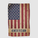 COPYRIGHT © 2020 Judy Burrows, Black Dog Art - All Rights Reserved. American Flag Rustic Personalised Patriotic Golf Towel