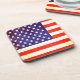 Graphic art coaster featuring flag of USA. Coasters designed to bring a touch patriotism to a living room, bedroom or bar. Also for independence day, 4th of July celebrations. Uniquely designed by Sarah Trett.