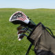 Stand out on the course with this striking American Flag Skull golf head cover. Featuring a bold skull design layered with the iconic stars and stripes of the USA flag, this head cover exudes strength, patriotism, and individuality. The distressed and artistic style adds a rugged, edgy vibe, perfect for golfers who love to showcase their personality and pride.