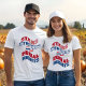 A personalised T-shirt for the entire family for 4th July celebration. The pattern has stars and stripes in red, white and blue. The name at the reverse side can be customised.