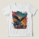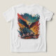 This vibrant and dynamic artwork depicts a powerful bald eagle soaring above an American flag, set against a backdrop of bold colours and abstract brushstrokes. The image evokes a sense of patriotism, freedom, and national pride.