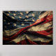 Patriotic American flag in waving fabric design with canvas material texture effect. This USA flag design is perfect for you to enjoy this poster on 4th of July, Memorial Day, Veterans Day, Independence Day Celebrations or to show you are proud to be American.