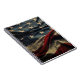 Patriotic American flag in waving fabric design with canvas material texture effect notebook.