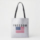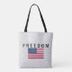 The word "FREEDOM" is printed in white, accompanied by a graphic of the American flag on a textured birch pattern.