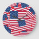A jumble of American flags, with red numbers, makes this bright wall clock fun and patriotic! This clock would also make a unique housewarming or boatwarming (or houseboat warming) gift. Available in two sizes of round clock, or a square clock. Copyright Scarebaby Design.