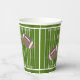 These Football Birthday Party Paper Cups that have a American football design with a name, age, and event all on a football field with a football. Personalised these cups with a the birthday event, name and age year. Super fun paper cups to use at your kids football themed birthday party. You can change the colours in customise for any fonts.