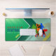 LOVE this desk mat! It's large! It fits across my desk. No need for a small mouse pad now! Color and print are excellent. Quality seems to be excellent too. Delivery was about 3 days sooner than expected. I think this is one of my favorite Zazzle products! Excellent. The color is vibrant and true to what I expected.