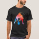 I give wanted to give this a 4 instead of a 5 because these Basic DARK T0shirts run unexpectedly SLIM or Narrow. Which is great if you do not have a potbelly, but I have a paunch. It isn't the shirt's fault that I've got a beer belly. The design and shirt itself is a quality cotton shirt. The color is more of a deep purple, but still a very pretty color. The Basic DARK T-shirts run a bit SLIMMER than the Basic Ts. The neck is a fraction narrower (or seems to be narrower) also. I'm a paunchy middle-aged woman and my neck is 12 inches (31cm) thick and the neckline fell about the same as in the photo of the man, and I had the desire to tug it a bit. So if you're a thick necked man or like loose shirts, be aware these are slimmer shirts. Once I get rid of my lockdown paunch it'll look great. The shirt washed well in cold water with no apparent bleeding. We don't have a dryer, so it hung dry. Did not shrink. Love the colors and the design. The design looks smaller on my shirt than it does on the model on-line. But still, it looks good on the shirt. The printing looks as it does on the model, just the size seems fractionally smaller. Washed garment in cold water, hung dry and design appeared unaffected.