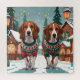This festive design captures the joyful spirit of the holiday season, featuring an adorable dogs.Nestled in a winter wonderland, complete with a decorated Christmas tree, and beautifully wrapped presents. Snowflakes gently fall, adding a magical touch to the scene, while the vibrant colours of the holiday decorations create a warm and cheerful atmosphere.