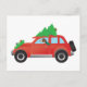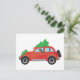 American Foxhound driving a car w/ Christmas tree Holiday Postcard