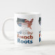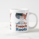 A map of the USA with the flags of France and America, and the text 'French Roots' underneath. Great for Americans proud of their French ancestry and for ex-pats.