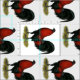 Black-breasted black red Games are a very old and cherished variety. They are referred to as "crow-winged" due to the black wing bay. Commissioned by Kenny Troiano for his book on game fowl colours.