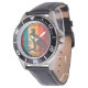 My husband loves the watch, he likes the dial, the graphics, the band, and it keeps perfect time.