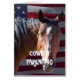 AMERICAN HISTORY BUFFS. Funny Western card offers helpful words of wisdom or silly parenting tips from our friendly horse herd friends. Fun for parents, grandparents or history teachers. Cover features a photo of a big bay American quarter horse with the U.S. flag; an Australian cattle dog on the back. Folks who love rural life, ranch life, country living or life on the farm will enjoy! You can leave card background white or pick a custom colour. From the original "Cowboy Parenting Series" by She Wolf Medicine.