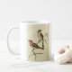 Vintage print of two American House Finches. Cute little birds on a cream aged background. Illustrated in the Victorian Era, 1862 by artist and American ornithologist John Cassin.
