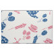 Cute American Independence Day celebration symbols in red white and blue over white background. Balloons, hats, fireworks etc.