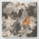 American Lady Butterfly On Apple Blossom, Stone Coaster. Digital Art. Black & White photo with highlighted butterfly, Nice design for many different occasions. Fully customisable; make it your own.