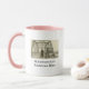 American Heritage Series (reproduced from original rare antique print) of a "quintessential american man and his automobile" (early 1900's Minnesota) transferred to this coffee mug with pink trim. A rare one-of-a-kind treasure from Ken-Ray studios.