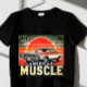 Here's another trending vintage-style t-shirt design featuring a retro mountain landscape with a sunburst background and the phrase "American muscle" Let me know if you’d like any changes! 🌄✨