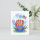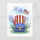 Red, white and blue ring true for this decorative American Patriotic fairytale home situated festively next to a puff of Lilies of the Nile. Original illustration by Noël Snow.