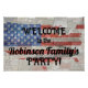 Vintage Patriotic United States map with USA Flag, red white and blue stars and stripes, on stone wall tiles. The calligraphic text is customisable.