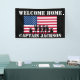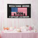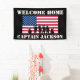 A simple military 'WELCOME HOME' banner, featuring, the american flag, the word "congratulations", soldiers in silhouette and the name of the soldier. All textstyle, size and color can be changed by clicking on the customize further link after personalizing.