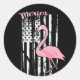 American Pink Flamingo USA White Flag Classic Round Sticker