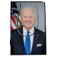 American President Joe Biden White House Photo: The photograph captures a moment in time during the Presidency Joe Biden the 46th President of the United States. Sunlight streams through a window, casting a warm glow on the figure of an Biden standing confidently in the centre of the frame. Standing tall with arms straight, a gesture that suggests both authority and a hint of casual ease. --- Mr. Biden is dressed impeccably in a dark suit, the crisp fabric contrasting sharply with the clean lines of his white shirt. A blue adds a touch of personality to the ensemble. --- A glimpse of patriotism is evident in the background. An American flag stands proudly on a pole to the man's left, its vibrant colours a subtle counterpoint to the cool blue of the wall behind him. --- Reelection soon to come for President Biden is the focal point of the image. His short white hair frames a kind face, etched with the lines of a life well-lived. A warm smile plays on his lips, conveying a sense of confidence, wisdom, and perhaps a hint of amusement.