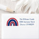 A red, white and blue rainbow return address label design for you to personalise with your name and address. You can change the font, font colour, font size, letter spacing, line spacing, background colour and reposition the text using the Design Tool.