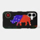 A USA flag rhinoceros in a black background, with a red "M" initial letter inside a black circle - cool zoo-themed original design by mixedworld zstore