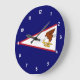 The flag of American Samoa is a flag consisting of a red-edged white triangle pointing towards the hoist charged with a bald eagle clutching a war club and fly-whisk, with dark blue upper and lower triangles. Adopted in April 1960 to replace the "Stars and Stripes" as the official flag of the territory, it has been the flag of the Territory of American Samoa since that year. The colours used epitomise the traditional colours of the United States and Samoa.