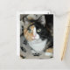This cat-themed postcard design features a digital colour photograph of a domestic (American) shorthair (DSH) calico shelter cat from Frederick County Animal Control. It makes a unique gift for cat lovers!