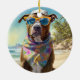 American Staffordshire on Beach,summer gift Ceramic Tree Decoration