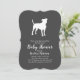 Include the big brother or sister fur baby in the celebration with this adorable American Staffordshire Terrier dog baby shower design! Perfect for a puppy lover with a baby on the way. The Amstaff Terrier is next to an adorable vintage carriage. The chalkboard grey background makes it perfect for a gender neutral or co-ed shower!