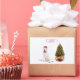 With a smile and a happy greeting, this White American Staffordshire Terrier is sitting next to a Christmas tree. Funny gift to wish Happy Holidays and Happy New Year.