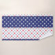 A vibrant beach towel featuring alternating red, white and blue stars.