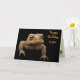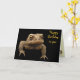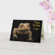 A grumpy looking American Toad (Bufo americanus) is looking out at you from this birthday card. This small amphibian is brown with black, gold olive green and orange coloration. His warts distinguish him from his frog neighbours. Although hatched in the water of ponds, rivers, lakes or streams, the tadpoles soon move to land where the toads live their adult lives. His startling call is a long screech. He looks quite fierce but is actually a gentle little guy who eat lots of garden pests including insects and slugs. The text reads: Happy Birthday to you. From Prince Charming. It can be customised or removed.