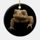 A grumpy looking American Toad (Bufo americanus) is looking out at you from this holiday ornament. This small amphibian is brown with black, gold olive green and orange coloration. His warts distinguish him from his frog neighbours. Although hatched in the water of ponds, rivers, lakes or streams, the tadpoles soon move to land where the toads live their adult lives. His startling call is a long screech. He looks quite fierce but is actually a gentle little guy who eat lots of garden pests including insects and slugs.