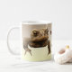 Two grumpy looking American Toads (Bufo americanus) are looking out at you from this mug. This small amphibian is brown with black, gold olive green and orange coloration. His warts distinguish him from his frog neighbours. Although hatched in the water of ponds, rivers, lakes or streams, the tadpoles soon move to land where the toads live their adult lives. His startling call is a long screech. He looks quite fierce but is actually a gentle little guy who eat lots of garden pests including insects and slugs. The text reads: Bring It On! It can be customised or removed.