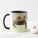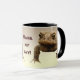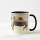 Two grumpy looking American Toads (Bufo americanus) are looking out at you from this mug. This small amphibian is brown with black, gold olive green and orange coloration. His warts distinguish him from his frog neighbours. Although hatched in the water of ponds, rivers, lakes or streams, the tadpoles soon move to land where the toads live their adult lives. His startling call is a long screech. He looks quite fierce but is actually a gentle little guy who eat lots of garden pests including insects and slugs. The text reads: Make my day. It can be customised or removed.