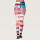 Cool leggings printed all over with the American flag on wood grain, and the transgender pride flag painted atop with bold strokes for a distressed look.