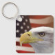 Keychain shown with the American flag printed on superimposed with the American Bald Eagle in front.