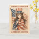 This card blends vintage anime style with patriotic pride, featuring a cheerful girl wrapped in the American flag and wearing a star-spangled hat, set against a backdrop of waving red, white, and blue. The front highlights the enduring values and freedoms that define the nation, while the inside offers space to personalise your message—whether you want to celebrate resilience, hope, or the ideals of liberty and justice. Perfect for anyone who appreciates a modern, uplifting take on American spirit, this card is a unique way to share your appreciation for the principles that unite us all.