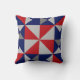 Barn quilt style pinwheel patterned pillow in Americana colour palette in red, blue and silver grey. Would go great in any rustic early American or nautical style room or porch decor. Your choice of styles and sizes.