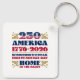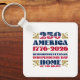 Never leave home without America's 250th anniversary celebration keychain. It has red, white, blue and gold patriotic colours with a modern typography design, stars and stripes and other design elements on a white background. It makes for a wonderful gift, souvenir and keepsake. The text reads: 250, America, 1776 - 2026, semiquincentennial, Independence Day, and home of the brave. Happy Birthday America!