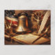 Celebrate America's 250th Anniversary with this commemorative Semiquincentennial Holiday Postcard. It features a historic image of the Constitution on parchment paper, the Liberty Bell, and the USA flag. The back side has a gold emblem symbolizing 1776-2026.