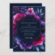 Evoke a sense of dramatic romance with this moody and elegant botanical design. Luminous amethyst purple and vibrant magenta peonies appear to glow against a deep, dark backdrop, creating a stunning contrast. This painterly arrangement, with its rich jewel tones and delicate foliage, is perfect for a sophisticated evening affair.