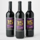 Celebrate 15 years with a custom wine label featuring a breathtaking bouquet of deep purple chrysanthemums, the traditional 15th-anniversary flower. A lustrous gold "15" is nestled within the wreath, while a flowing purple ribbon displays your personalised message and names. This elegant design is the perfect detail for your crystal anniversary celebration, dinner party, or as a heartfelt gift.