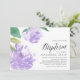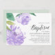 Chic baptism invitation for your baby girl features watercolor peony flower illustrations in elegant lavender purple, accented with lush green leaves. Personalise with your baptism ceremony and celebration details aligned at the right. Cards reverse to pastel mint green.